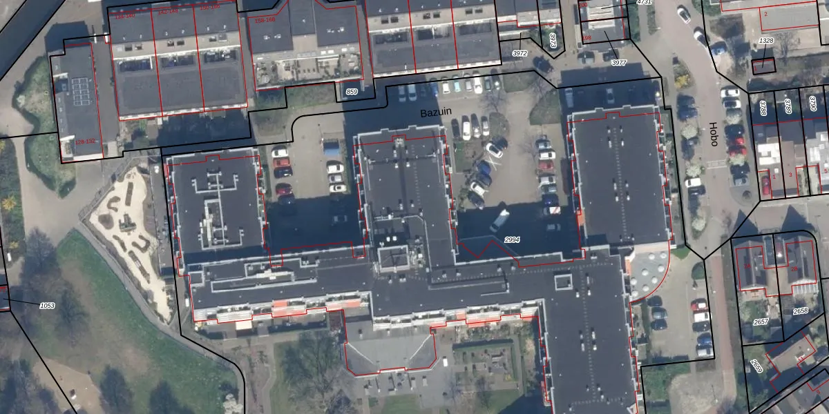 Het perceel waarop Bazuin 208 staat heeft een oppervlakte van 1,2 ha. Dit is een zeer groot perceel. De perceeloppervlakte wordt geregistreerd door het Kadaster. Gedetailleerde informatie over de maten van dit perceel kunt u vinden in het rapport Kadastrale kaart met maatvoering van Bazuin 208.