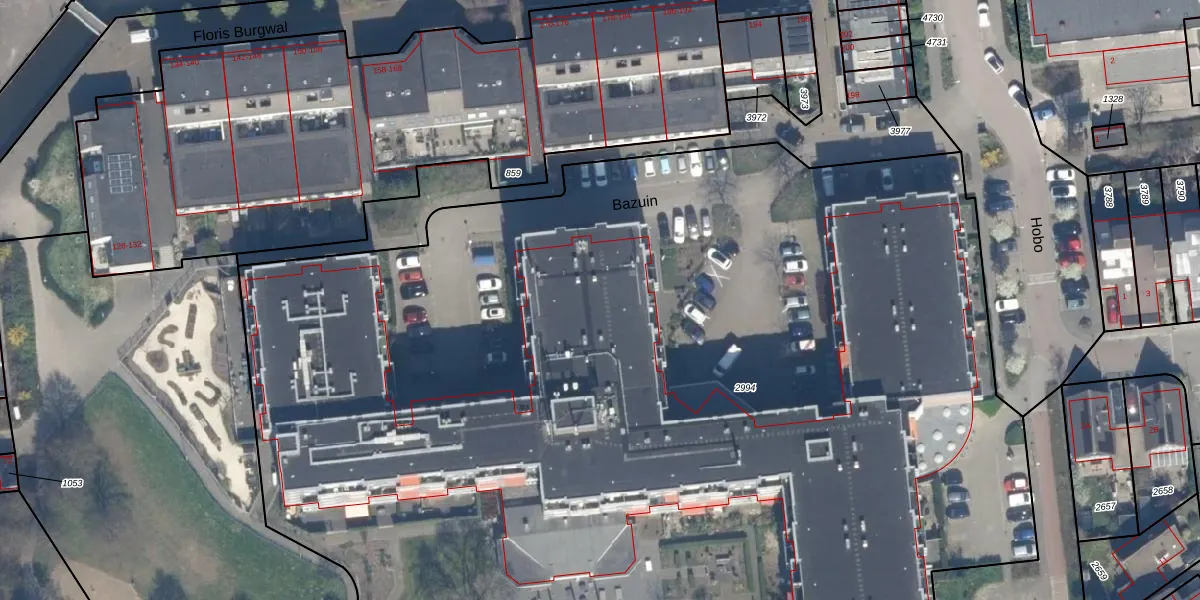 Het perceel waarop Bazuin 38 staat heeft een oppervlakte van 1,2 ha. Dit is een zeer groot perceel. De perceeloppervlakte wordt geregistreerd door het Kadaster. Gedetailleerde informatie over de maten van dit perceel kunt u vinden in het rapport Kadastrale kaart met maatvoering van Bazuin 38.
