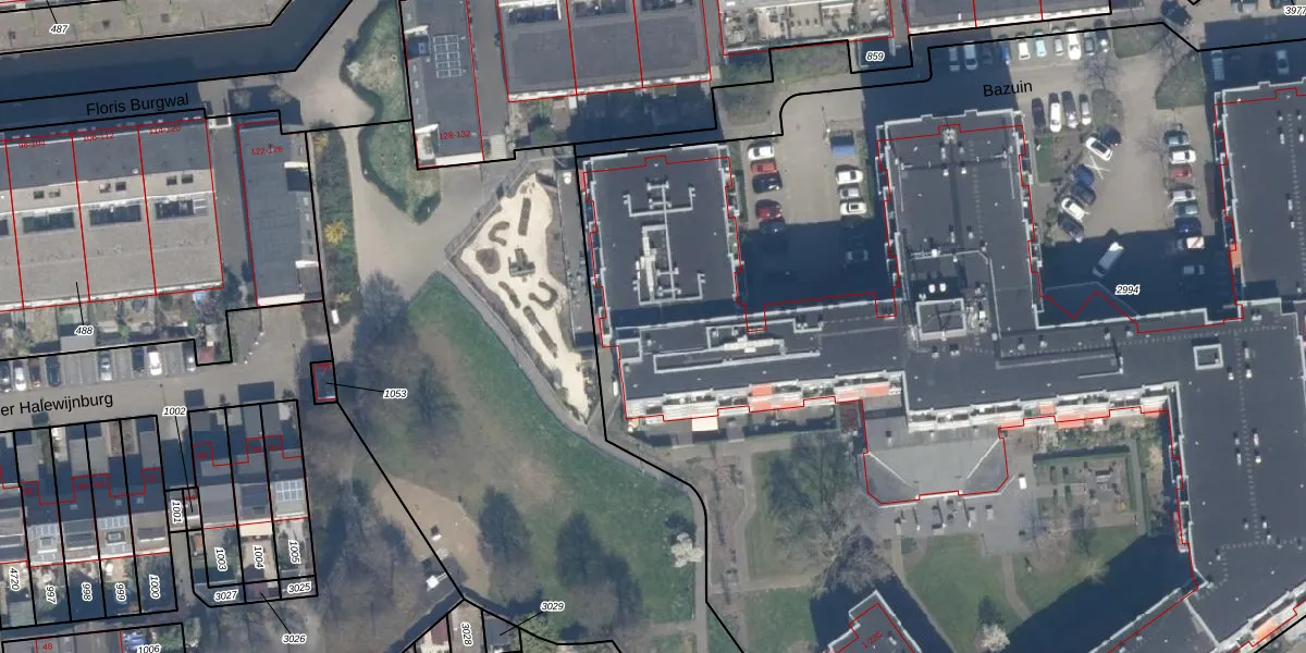 Het perceel waarop Bazuin 51 staat heeft een oppervlakte van 1,2 ha. Dit is een zeer groot perceel. De perceeloppervlakte wordt geregistreerd door het Kadaster. Gedetailleerde informatie over de maten van dit perceel kunt u vinden in het rapport Kadastrale kaart met maatvoering van Bazuin 51.