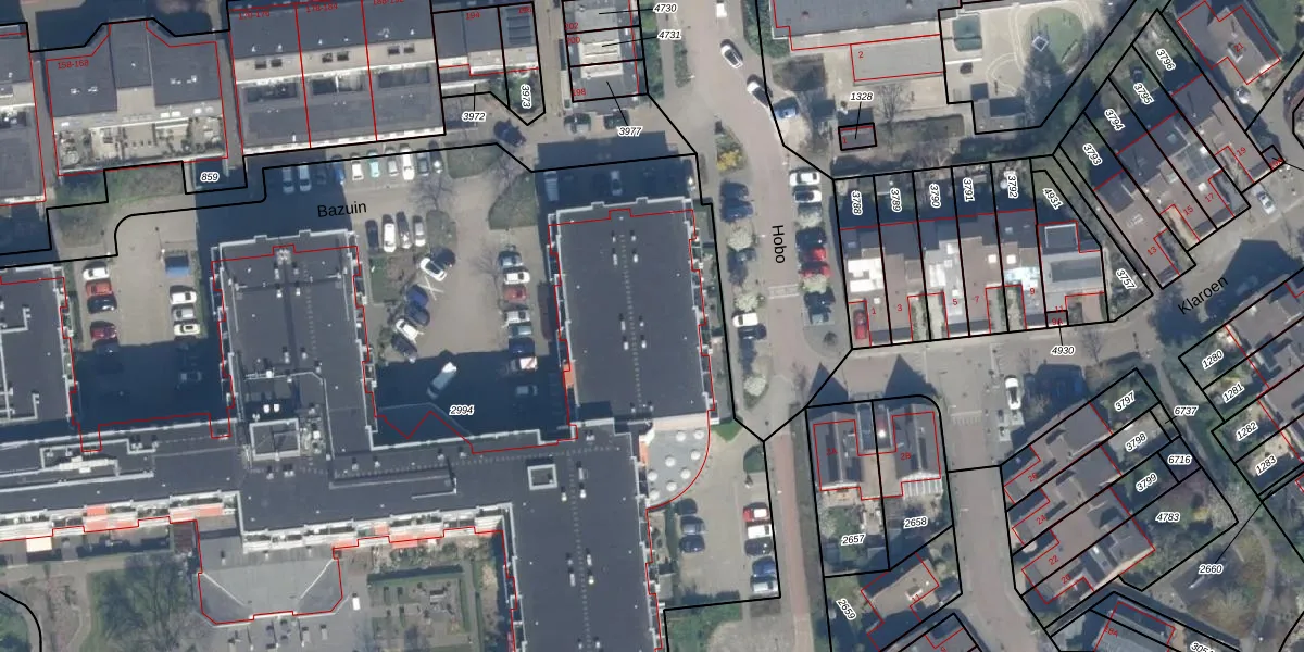 Het perceel waarop Bazuin 83 staat heeft een oppervlakte van 1,2 ha. Dit is een zeer groot perceel. De perceeloppervlakte wordt geregistreerd door het Kadaster. Gedetailleerde informatie over de maten van dit perceel kunt u vinden in het rapport Kadastrale kaart met maatvoering van Bazuin 83.