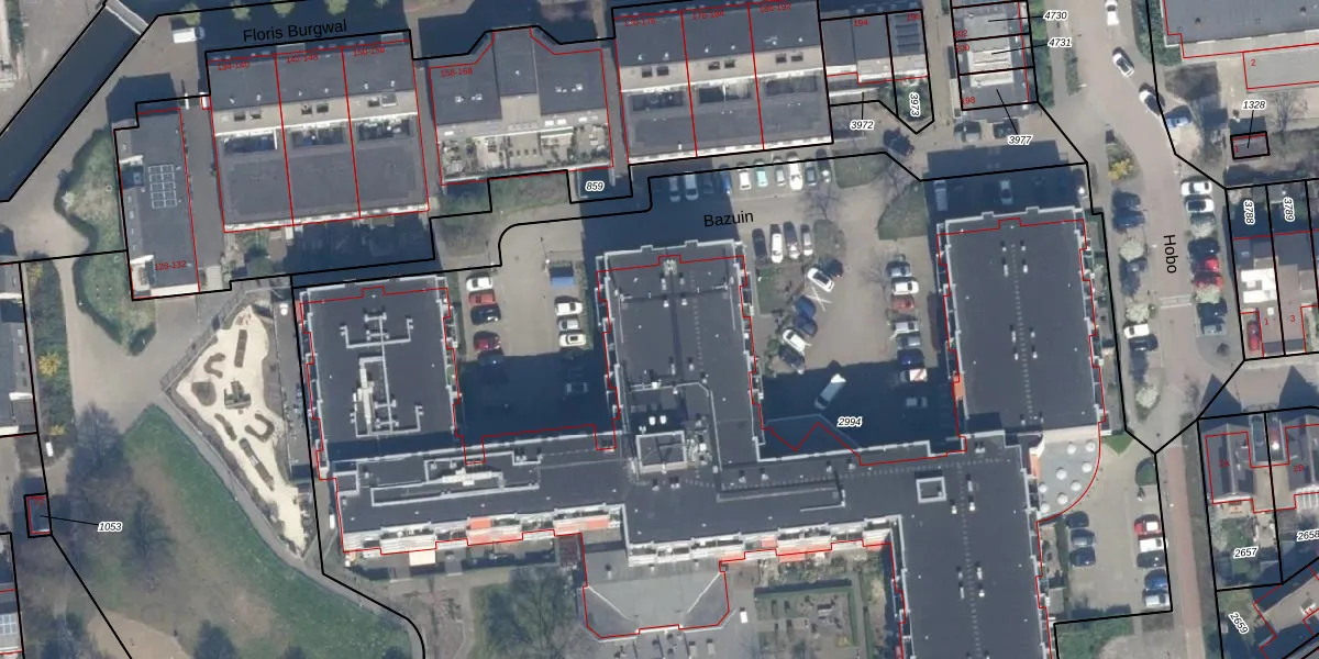 Het perceel waarop Bazuin 96 staat heeft een oppervlakte van 1,2 ha. Dit is een zeer groot perceel. De perceeloppervlakte wordt geregistreerd door het Kadaster. Gedetailleerde informatie over de maten van dit perceel kunt u vinden in het rapport Kadastrale kaart met maatvoering van Bazuin 96.