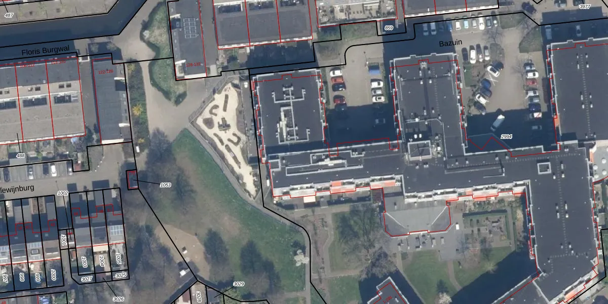 Het perceel waarop Bazuin 99 staat heeft een oppervlakte van 1,2 ha. Dit is een zeer groot perceel. De perceeloppervlakte wordt geregistreerd door het Kadaster. Gedetailleerde informatie over de maten van dit perceel kunt u vinden in het rapport Kadastrale kaart met maatvoering van Bazuin 99.