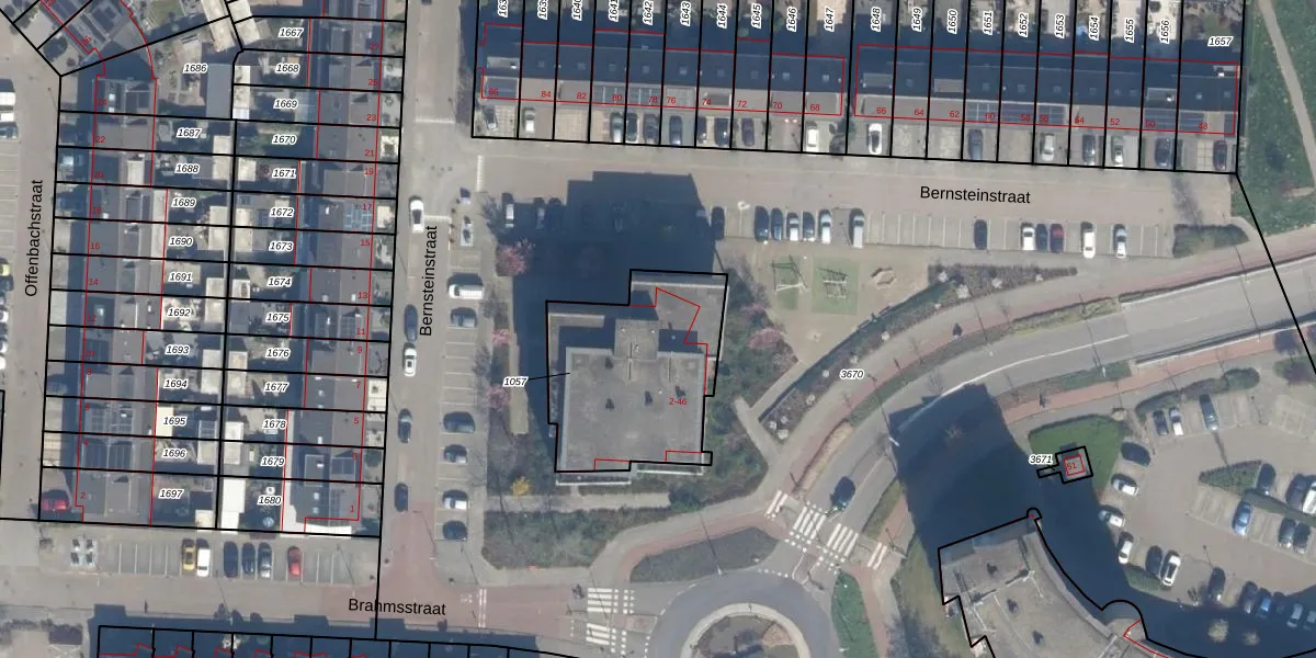 Het perceel waarop Bernsteinstraat 32 staat heeft een oppervlakte van 684 m². Dit is een groot perceel. De perceeloppervlakte wordt geregistreerd door het Kadaster. Gedetailleerde informatie over de maten van dit perceel kunt u vinden in het rapport Kadastrale kaart met maatvoering van Bernsteinstraat 32.