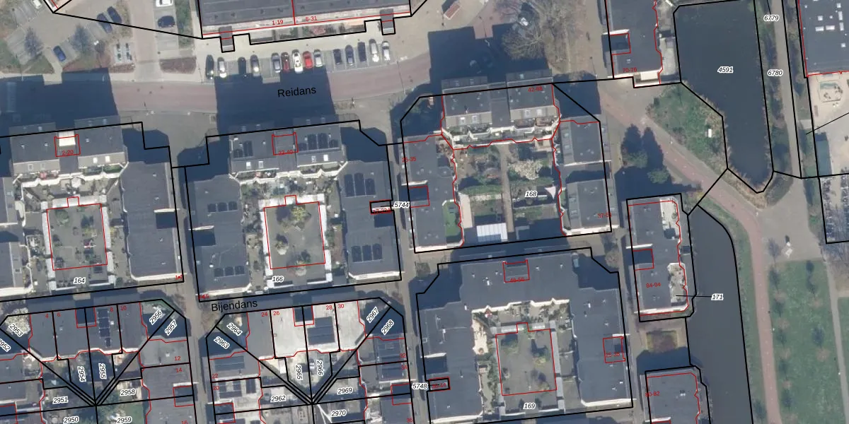 Het perceel waarop Bijendans 29 staat heeft een oppervlakte van 1622 m². Dit is een zeer groot perceel. De perceeloppervlakte wordt geregistreerd door het Kadaster. Gedetailleerde informatie over de maten van dit perceel kunt u vinden in het rapport Kadastrale kaart met maatvoering van Bijendans 29.