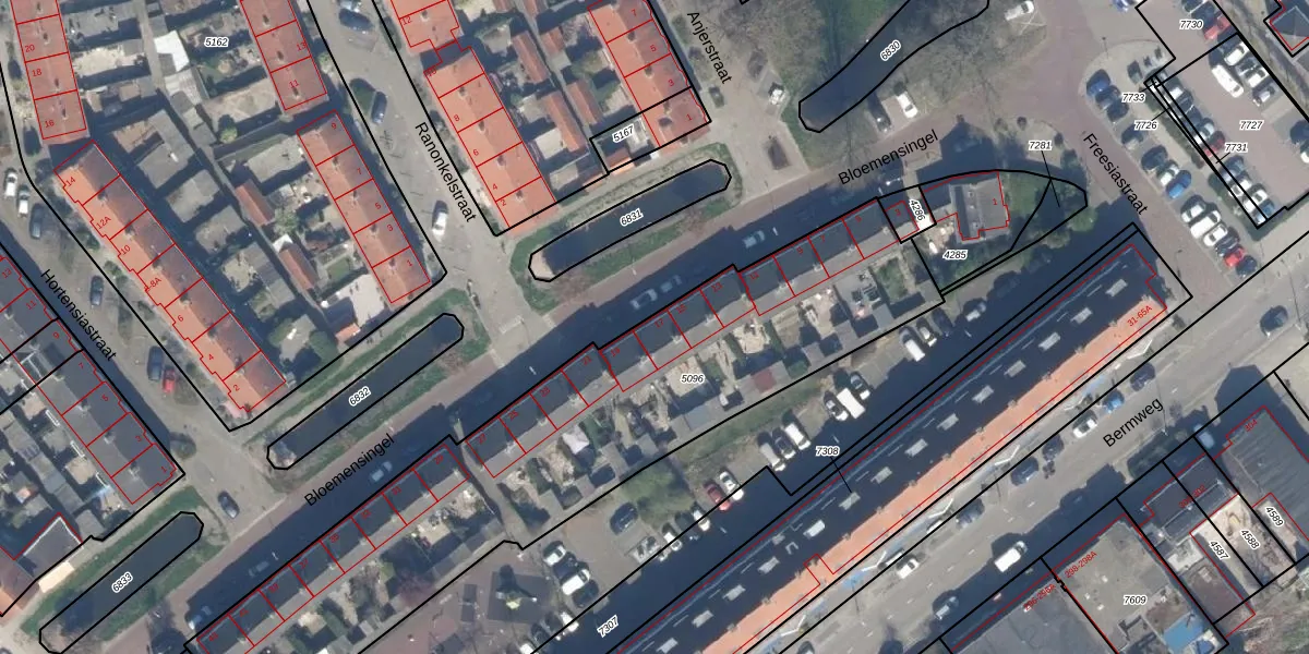 Het perceel waarop Bloemensingel 17 staat heeft een oppervlakte van 2360 m². Dit is een zeer groot perceel. De perceeloppervlakte wordt geregistreerd door het Kadaster. Gedetailleerde informatie over de maten van dit perceel kunt u vinden in het rapport Kadastrale kaart met maatvoering van Bloemensingel 17.