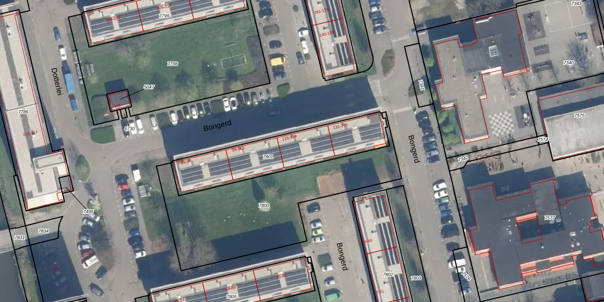 Het perceel waarop Bongerd 121 staat heeft een oppervlakte van 840 m². Dit is een groot perceel. De perceeloppervlakte wordt geregistreerd door het Kadaster. Gedetailleerde informatie over de maten van dit perceel kunt u vinden in het rapport Kadastrale kaart met maatvoering van Bongerd 121.