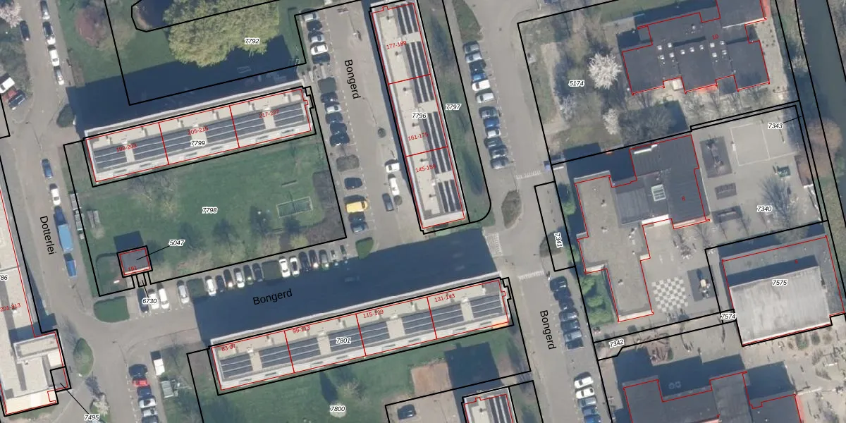 Het perceel waarop Bongerd 145 staat heeft een oppervlakte van 640 m². Dit is een groot perceel. De perceeloppervlakte wordt geregistreerd door het Kadaster. Gedetailleerde informatie over de maten van dit perceel kunt u vinden in het rapport Kadastrale kaart met maatvoering van Bongerd 145.
