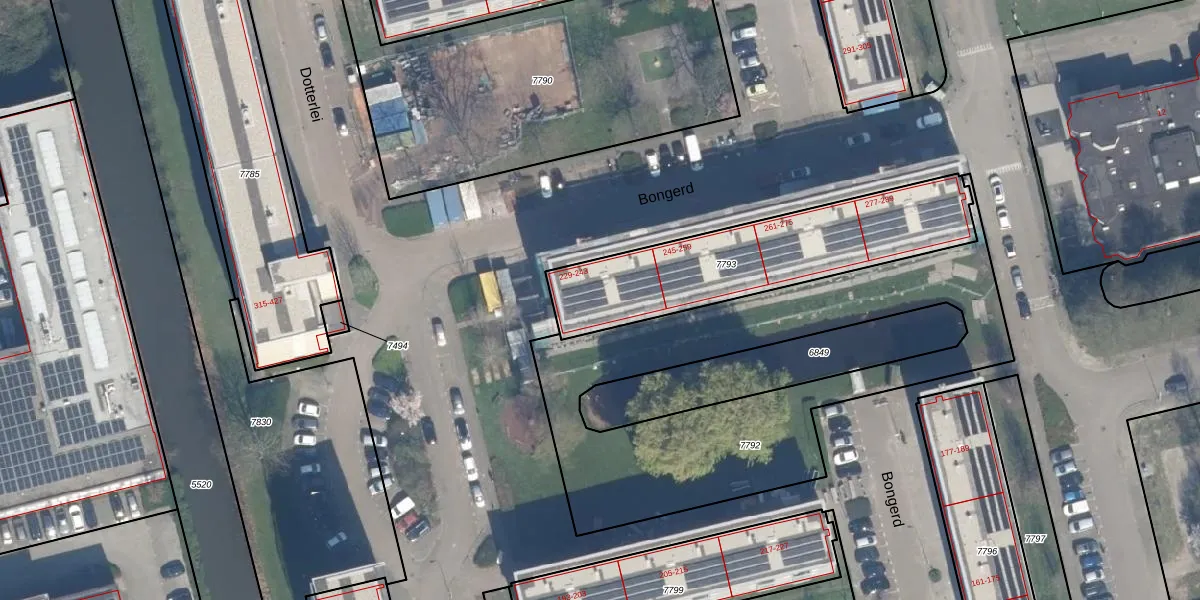 Het perceel waarop Bongerd 231 staat heeft een oppervlakte van 835 m². Dit is een groot perceel. De perceeloppervlakte wordt geregistreerd door het Kadaster. Gedetailleerde informatie over de maten van dit perceel kunt u vinden in het rapport Kadastrale kaart met maatvoering van Bongerd 231.