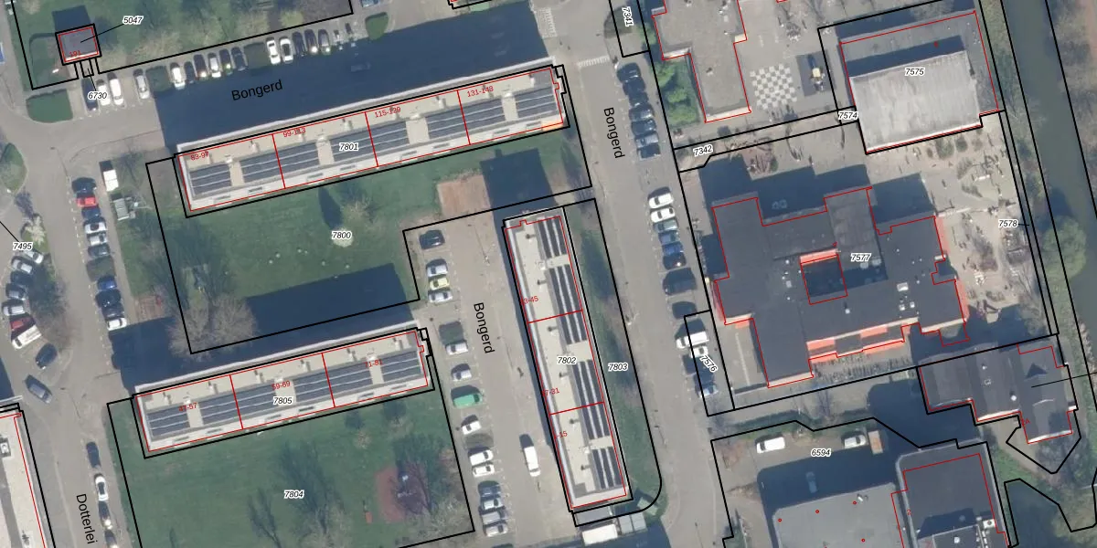 Het perceel waarop Bongerd 39 staat heeft een oppervlakte van 645 m². Dit is een groot perceel. De perceeloppervlakte wordt geregistreerd door het Kadaster. Gedetailleerde informatie over de maten van dit perceel kunt u vinden in het rapport Kadastrale kaart met maatvoering van Bongerd 39.