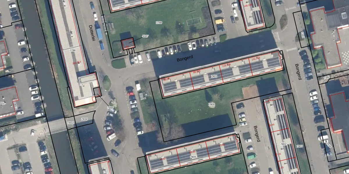 Het perceel waarop Bongerd 93 staat heeft een oppervlakte van 840 m². Dit is een groot perceel. De perceeloppervlakte wordt geregistreerd door het Kadaster. Gedetailleerde informatie over de maten van dit perceel kunt u vinden in het rapport Kadastrale kaart met maatvoering van Bongerd 93.