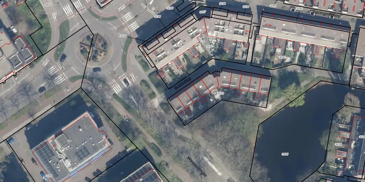 Het perceel waarop Boterdiep 2 staat heeft een oppervlakte van 972 m². Dit is een groot perceel. De perceeloppervlakte wordt geregistreerd door het Kadaster. Gedetailleerde informatie over de maten van dit perceel kunt u vinden in het rapport Kadastrale kaart met maatvoering van Boterdiep 2.
