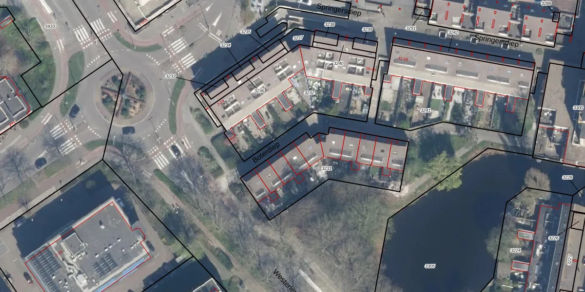 Het perceel waarop Boterdiep 4 staat heeft een oppervlakte van 972 m². Dit is een groot perceel. De perceeloppervlakte wordt geregistreerd door het Kadaster. Gedetailleerde informatie over de maten van dit perceel kunt u vinden in het rapport Kadastrale kaart met maatvoering van Boterdiep 4.