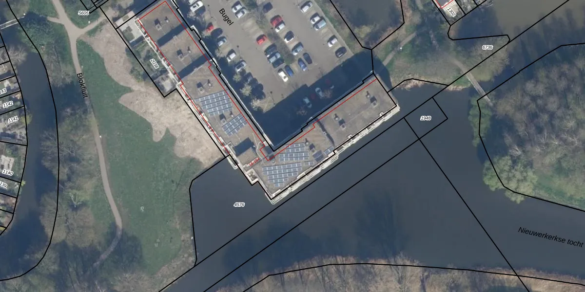 Het perceel waarop Bugel 28 staat heeft een oppervlakte van 1848 m². Dit is een zeer groot perceel. De perceeloppervlakte wordt geregistreerd door het Kadaster. Gedetailleerde informatie over de maten van dit perceel kunt u vinden in het rapport Kadastrale kaart met maatvoering van Bugel 28.