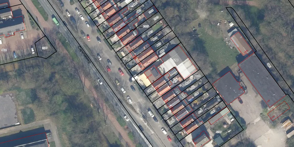 Het perceel waarop Capelseweg 142 staat heeft een oppervlakte van 585 m². Dit is een groot perceel. De perceeloppervlakte wordt geregistreerd door het Kadaster. Gedetailleerde informatie over de maten van dit perceel kunt u vinden in het rapport Kadastrale kaart met maatvoering van Capelseweg 142.