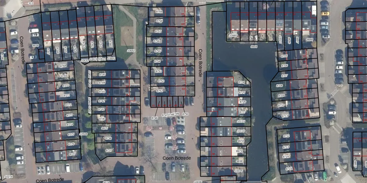 Coen Botrede 53 is gelegen op kadastraal perceel CPL01B8751. Deze kadastrale aanduiding is uniek en wordt gebruikt door het Kadaster om eigendomsrechten en andere zakelijke rechten vast te leggen. Het perceel maakt onderdeel uit van de kadastrale gemeente Capelle aan den IJssel.
