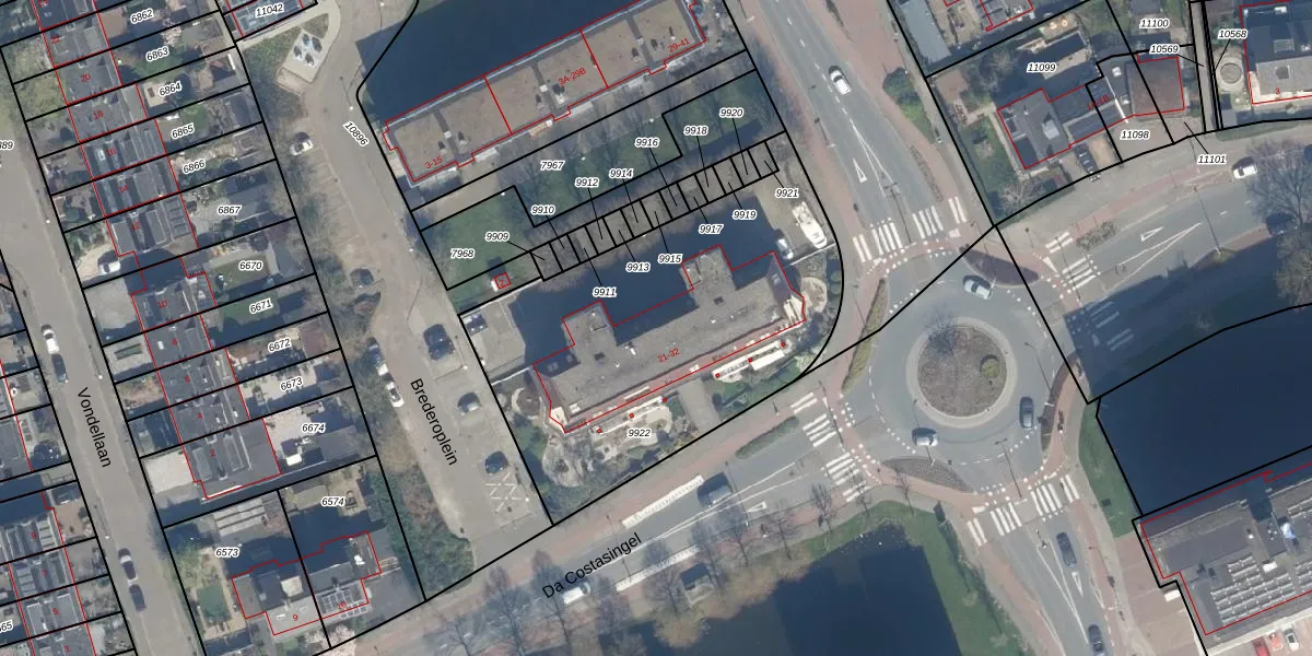 Het perceel waarop Da Costasingel 27 staat heeft een oppervlakte van 1775 m². Dit is een zeer groot perceel. De perceeloppervlakte wordt geregistreerd door het Kadaster. Gedetailleerde informatie over de maten van dit perceel kunt u vinden in het rapport Kadastrale kaart met maatvoering van Da Costasingel 27.