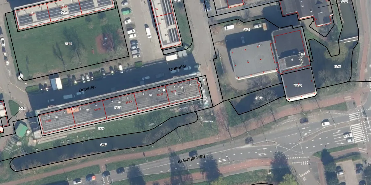 Het perceel waarop Dotterlei 13 staat heeft een oppervlakte van 1045 m². Dit is een zeer groot perceel. De perceeloppervlakte wordt geregistreerd door het Kadaster. Gedetailleerde informatie over de maten van dit perceel kunt u vinden in het rapport Kadastrale kaart met maatvoering van Dotterlei 13.