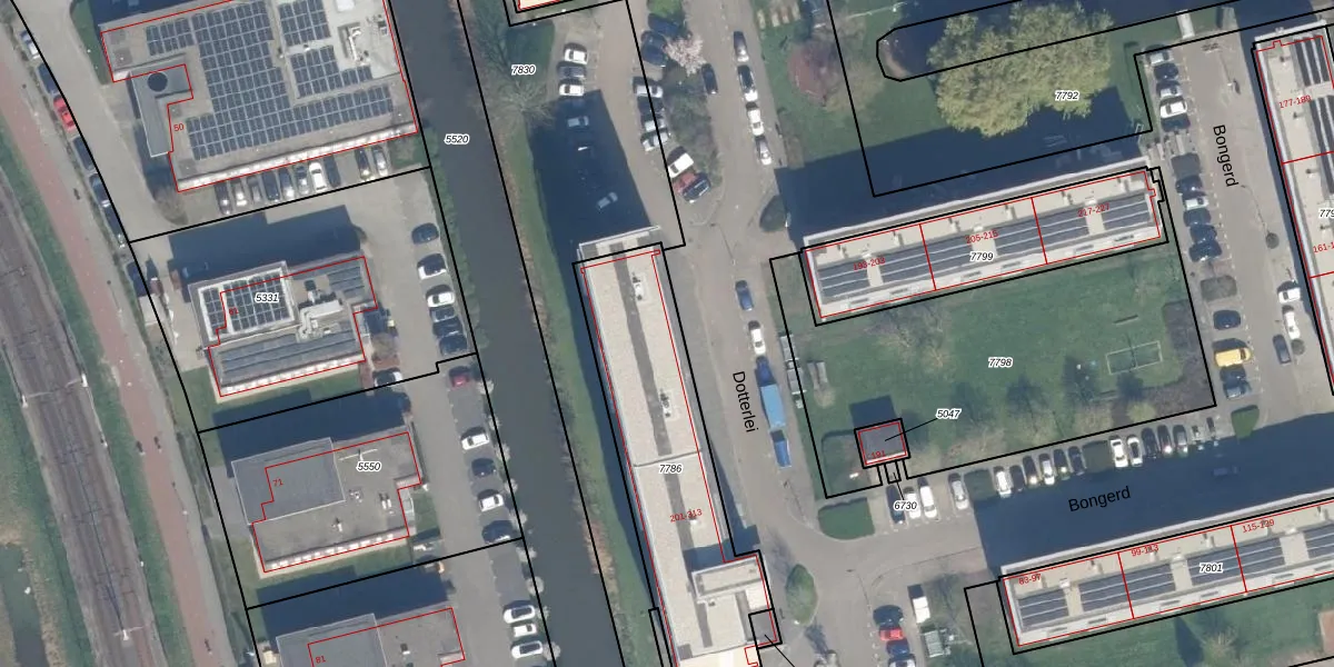 Het perceel waarop Dotterlei 283 staat heeft een oppervlakte van 915 m². Dit is een groot perceel. De perceeloppervlakte wordt geregistreerd door het Kadaster. Gedetailleerde informatie over de maten van dit perceel kunt u vinden in het rapport Kadastrale kaart met maatvoering van Dotterlei 283.
