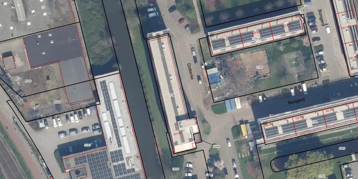 Het perceel waarop Dotterlei 393 staat heeft een oppervlakte van 915 m². Dit is een groot perceel. De perceeloppervlakte wordt geregistreerd door het Kadaster. Gedetailleerde informatie over de maten van dit perceel kunt u vinden in het rapport Kadastrale kaart met maatvoering van Dotterlei 393.
