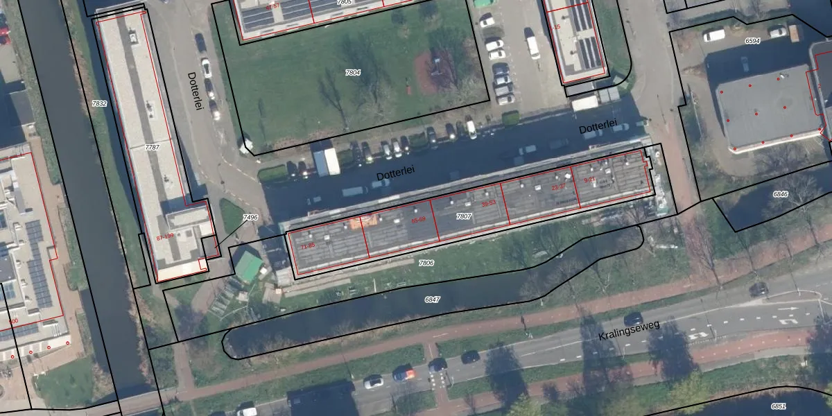 Het perceel waarop Dotterlei 55 staat heeft een oppervlakte van 1045 m². Dit is een zeer groot perceel. De perceeloppervlakte wordt geregistreerd door het Kadaster. Gedetailleerde informatie over de maten van dit perceel kunt u vinden in het rapport Kadastrale kaart met maatvoering van Dotterlei 55.