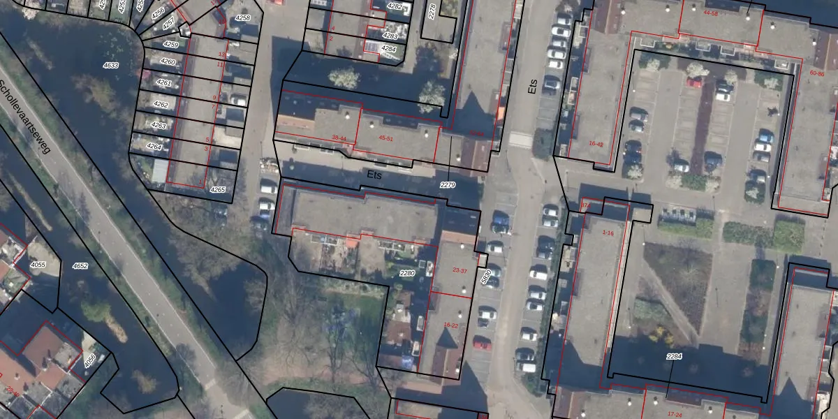 Het perceel waarop Ets 34 staat heeft een oppervlakte van 1430 m². Dit is een zeer groot perceel. De perceeloppervlakte wordt geregistreerd door het Kadaster. Gedetailleerde informatie over de maten van dit perceel kunt u vinden in het rapport Kadastrale kaart met maatvoering van Ets 34.