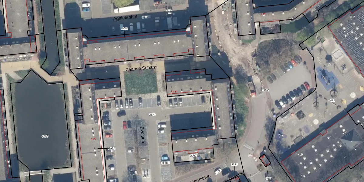 Het perceel waarop Evoluon 59 staat heeft een oppervlakte van 1104 m². Dit is een zeer groot perceel. De perceeloppervlakte wordt geregistreerd door het Kadaster. Gedetailleerde informatie over de maten van dit perceel kunt u vinden in het rapport Kadastrale kaart met maatvoering van Evoluon 59.
