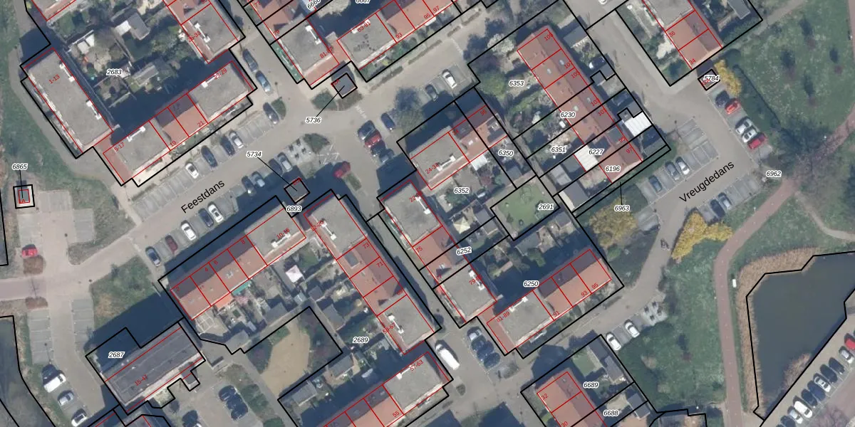 Het perceel waarop Feestdans 26 staat heeft een oppervlakte van 684 m². Dit is een groot perceel. De perceeloppervlakte wordt geregistreerd door het Kadaster. Gedetailleerde informatie over de maten van dit perceel kunt u vinden in het rapport Kadastrale kaart met maatvoering van Feestdans 26.