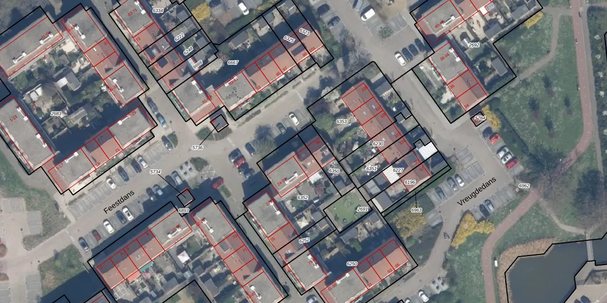 Het perceel waarop Feestdans 34 staat heeft een oppervlakte van 684 m². Dit is een groot perceel. De perceeloppervlakte wordt geregistreerd door het Kadaster. Gedetailleerde informatie over de maten van dit perceel kunt u vinden in het rapport Kadastrale kaart met maatvoering van Feestdans 34.