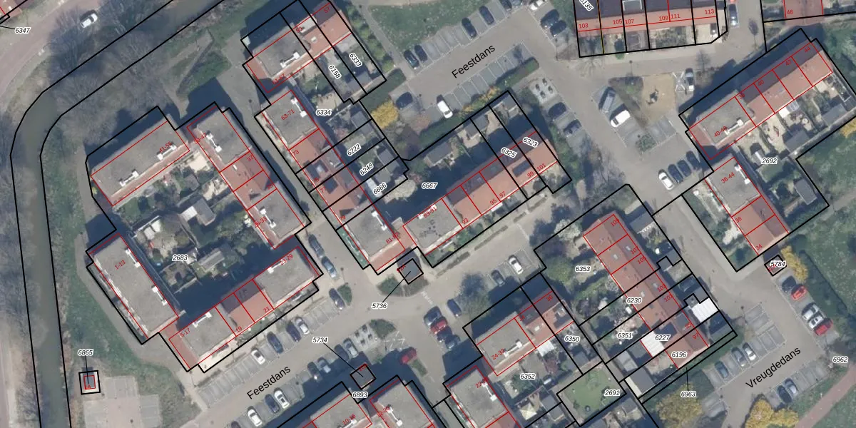 Het perceel waarop Feestdans 91 staat heeft een oppervlakte van 806 m². Dit is een groot perceel. De perceeloppervlakte wordt geregistreerd door het Kadaster. Gedetailleerde informatie over de maten van dit perceel kunt u vinden in het rapport Kadastrale kaart met maatvoering van Feestdans 91.