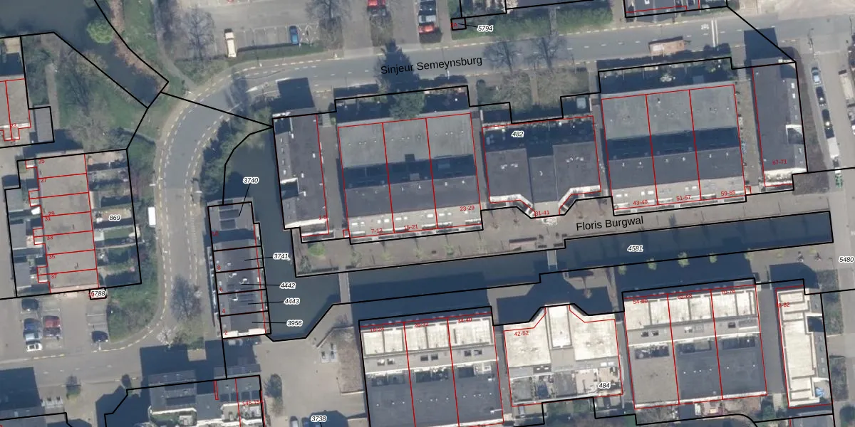 Het perceel waarop Floris Burgwal 21 staat heeft een oppervlakte van 3707 m². Dit is een zeer groot perceel. De perceeloppervlakte wordt geregistreerd door het Kadaster. Gedetailleerde informatie over de maten van dit perceel kunt u vinden in het rapport Kadastrale kaart met maatvoering van Floris Burgwal 21.