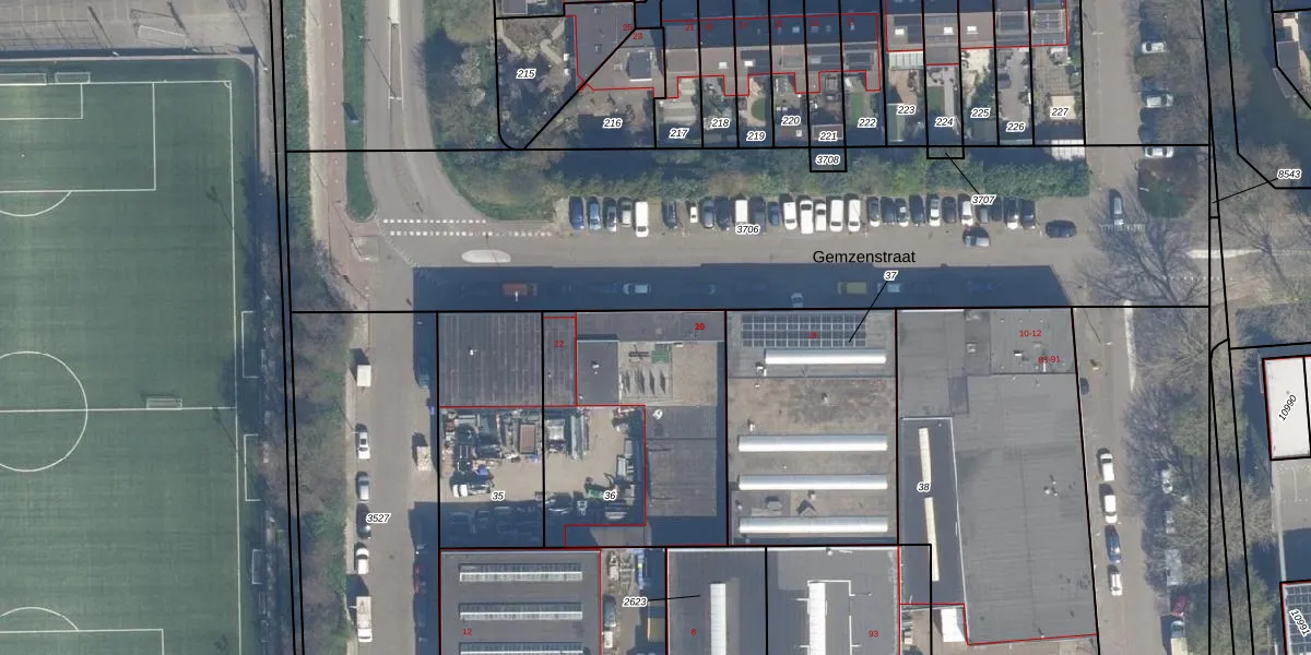 Het perceel waarop Gemzenstraat 20 staat heeft een oppervlakte van 1011 m². Dit is een zeer groot perceel. De perceeloppervlakte wordt geregistreerd door het Kadaster. Gedetailleerde informatie over de maten van dit perceel kunt u vinden in het rapport Kadastrale kaart met maatvoering van Gemzenstraat 20.