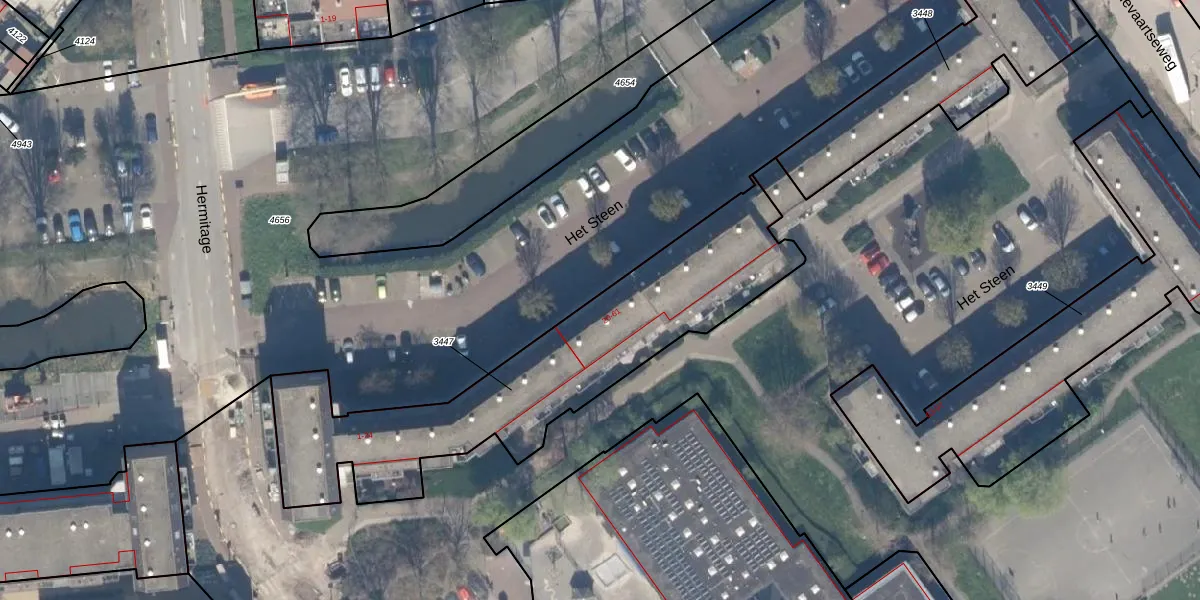 Het perceel waarop Het Steen 25 staat heeft een oppervlakte van 1351 m². Dit is een zeer groot perceel. De perceeloppervlakte wordt geregistreerd door het Kadaster. Gedetailleerde informatie over de maten van dit perceel kunt u vinden in het rapport Kadastrale kaart met maatvoering van Het Steen 25.
