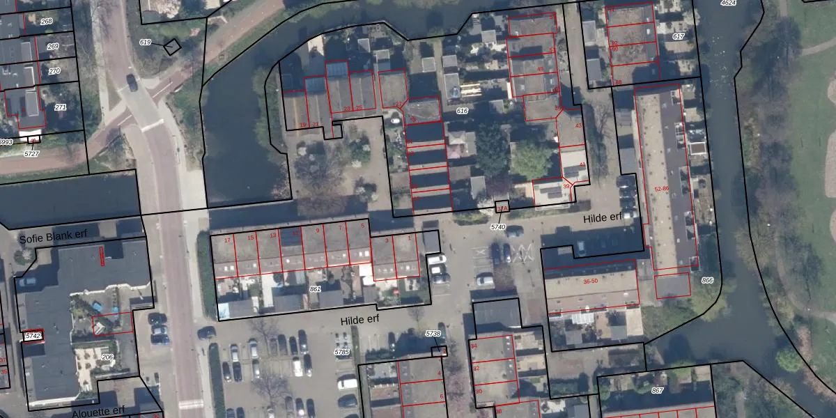 Het perceel waarop Hilde erf 37 staat heeft een oppervlakte van 2536 m². Dit is een zeer groot perceel. De perceeloppervlakte wordt geregistreerd door het Kadaster. Gedetailleerde informatie over de maten van dit perceel kunt u vinden in het rapport Kadastrale kaart met maatvoering van Hilde erf 37.