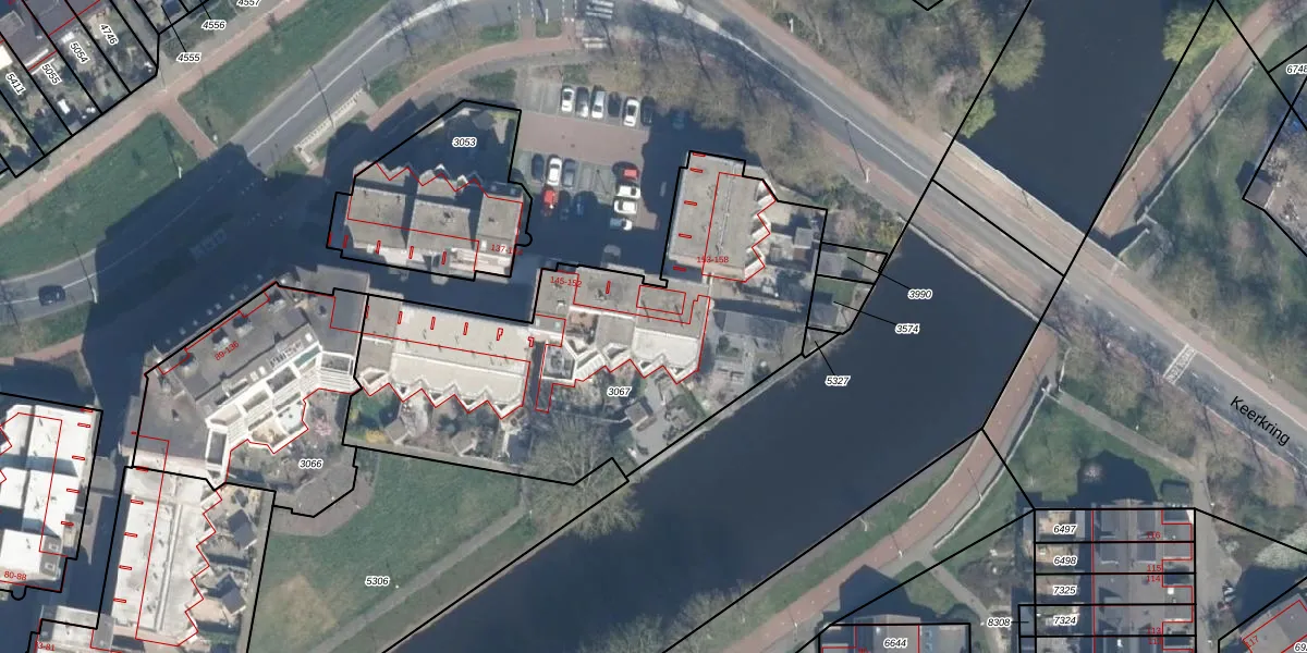 Het perceel waarop Keerkring 151 staat heeft een oppervlakte van 2017 m². Dit is een zeer groot perceel. De perceeloppervlakte wordt geregistreerd door het Kadaster. Gedetailleerde informatie over de maten van dit perceel kunt u vinden in het rapport Kadastrale kaart met maatvoering van Keerkring 151.