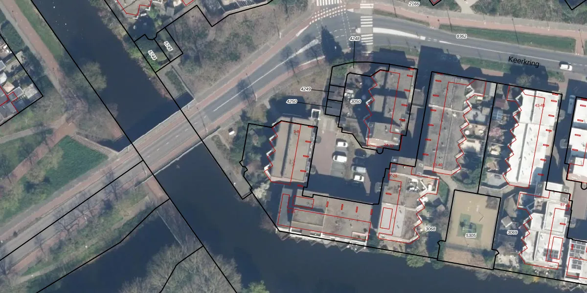 Het perceel waarop Keerkring 2 staat heeft een oppervlakte van 2548 m². Dit is een zeer groot perceel. De perceeloppervlakte wordt geregistreerd door het Kadaster. Gedetailleerde informatie over de maten van dit perceel kunt u vinden in het rapport Kadastrale kaart met maatvoering van Keerkring 2.