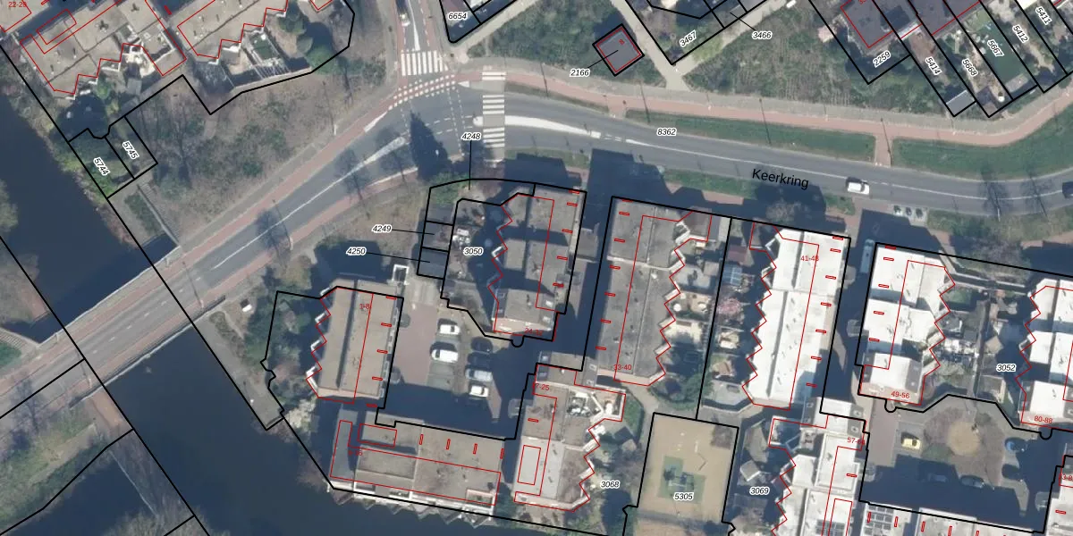 Het perceel waarop Keerkring 28 staat heeft een oppervlakte van 586 m². Dit is een groot perceel. De perceeloppervlakte wordt geregistreerd door het Kadaster. Gedetailleerde informatie over de maten van dit perceel kunt u vinden in het rapport Kadastrale kaart met maatvoering van Keerkring 28.
