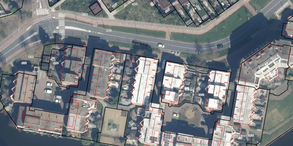 Het perceel waarop Keerkring 44 staat heeft een oppervlakte van 3423 m². Dit is een zeer groot perceel. De perceeloppervlakte wordt geregistreerd door het Kadaster. Gedetailleerde informatie over de maten van dit perceel kunt u vinden in het rapport Kadastrale kaart met maatvoering van Keerkring 44.