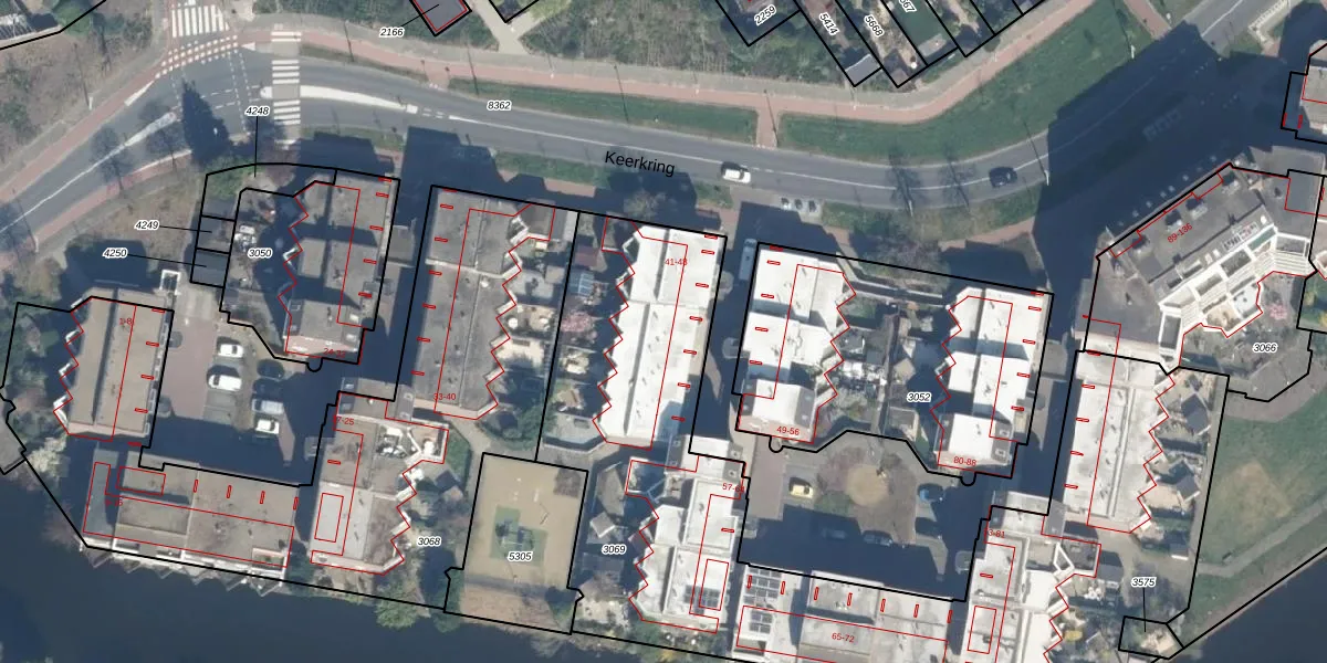 Het perceel waarop Keerkring 45 staat heeft een oppervlakte van 3423 m². Dit is een zeer groot perceel. De perceeloppervlakte wordt geregistreerd door het Kadaster. Gedetailleerde informatie over de maten van dit perceel kunt u vinden in het rapport Kadastrale kaart met maatvoering van Keerkring 45.