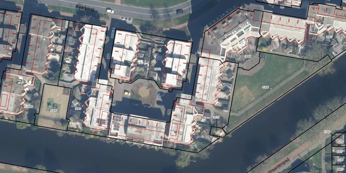 Het perceel waarop Keerkring 80 staat heeft een oppervlakte van 1256 m². Dit is een zeer groot perceel. De perceeloppervlakte wordt geregistreerd door het Kadaster. Gedetailleerde informatie over de maten van dit perceel kunt u vinden in het rapport Kadastrale kaart met maatvoering van Keerkring 80.