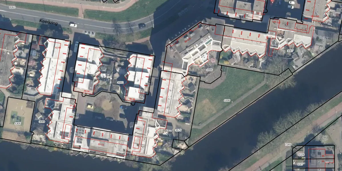 Het perceel waarop Keerkring 92 staat heeft een oppervlakte van 3423 m². Dit is een zeer groot perceel. De perceeloppervlakte wordt geregistreerd door het Kadaster. Gedetailleerde informatie over de maten van dit perceel kunt u vinden in het rapport Kadastrale kaart met maatvoering van Keerkring 92.