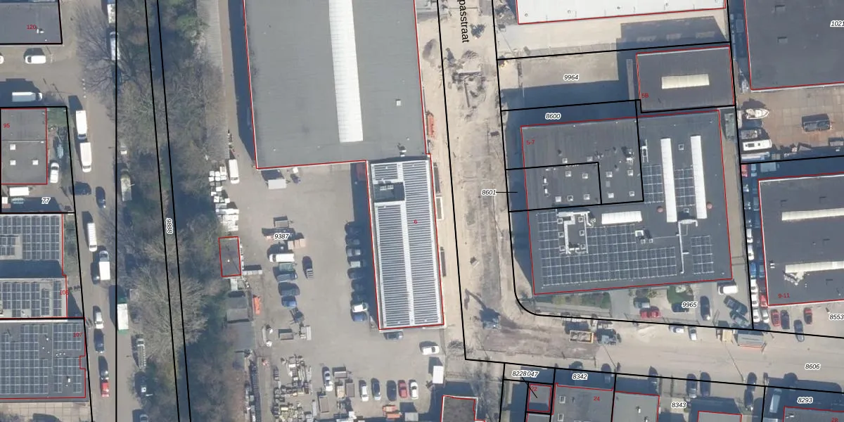 Het perceel waarop Kompasstraat 6 staat heeft een oppervlakte van 1,1 ha. Dit is een zeer groot perceel. De perceeloppervlakte wordt geregistreerd door het Kadaster. Gedetailleerde informatie over de maten van dit perceel kunt u vinden in het rapport Kadastrale kaart met maatvoering van Kompasstraat 6.