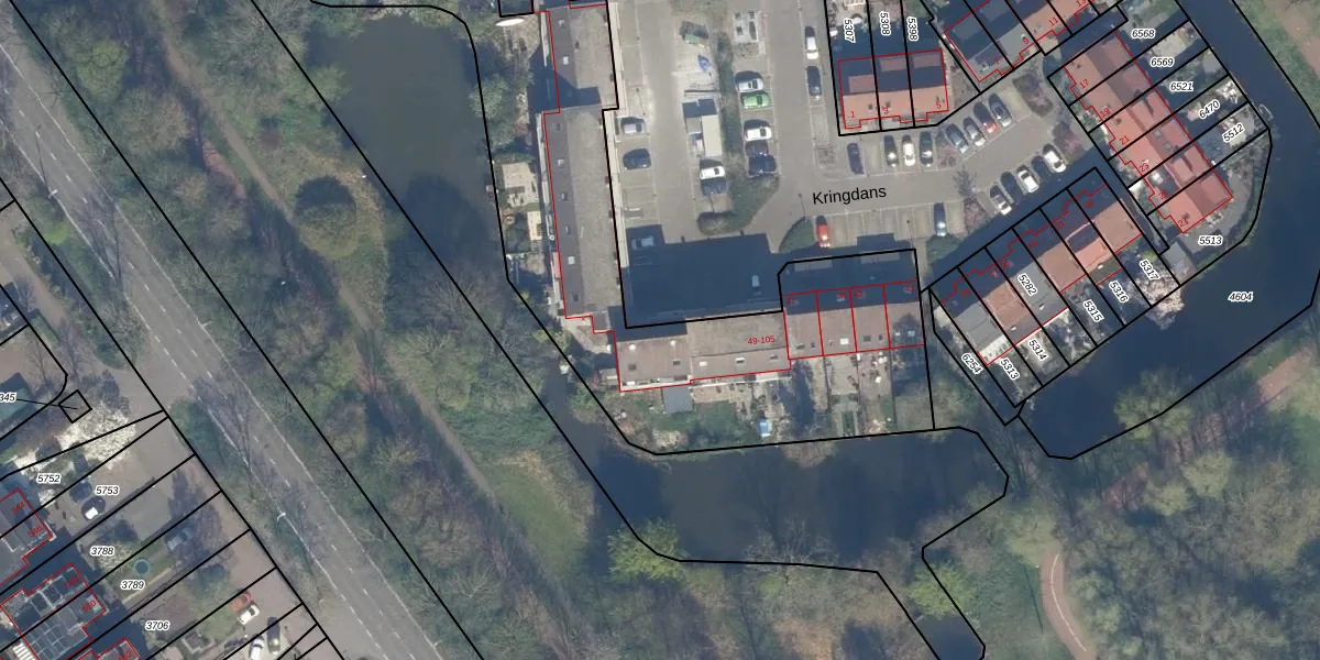 Het perceel waarop Kringdans 103 staat heeft een oppervlakte van 3763 m². Dit is een zeer groot perceel. De perceeloppervlakte wordt geregistreerd door het Kadaster. Gedetailleerde informatie over de maten van dit perceel kunt u vinden in het rapport Kadastrale kaart met maatvoering van Kringdans 103.