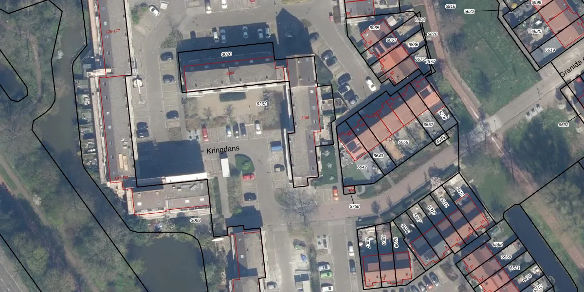 Het perceel waarop Kringdans 16 staat heeft een oppervlakte van 982 m². Dit is een groot perceel. De perceeloppervlakte wordt geregistreerd door het Kadaster. Gedetailleerde informatie over de maten van dit perceel kunt u vinden in het rapport Kadastrale kaart met maatvoering van Kringdans 16.