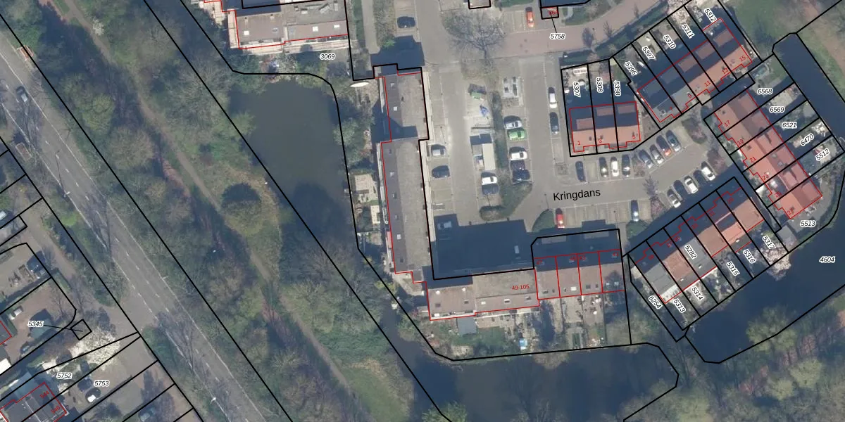 Het perceel waarop Kringdans 57 staat heeft een oppervlakte van 3763 m². Dit is een zeer groot perceel. De perceeloppervlakte wordt geregistreerd door het Kadaster. Gedetailleerde informatie over de maten van dit perceel kunt u vinden in het rapport Kadastrale kaart met maatvoering van Kringdans 57.