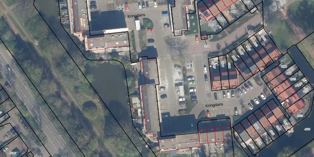 Het perceel waarop Kringdans 59 staat heeft een oppervlakte van 3763 m². Dit is een zeer groot perceel. De perceeloppervlakte wordt geregistreerd door het Kadaster. Gedetailleerde informatie over de maten van dit perceel kunt u vinden in het rapport Kadastrale kaart met maatvoering van Kringdans 59.