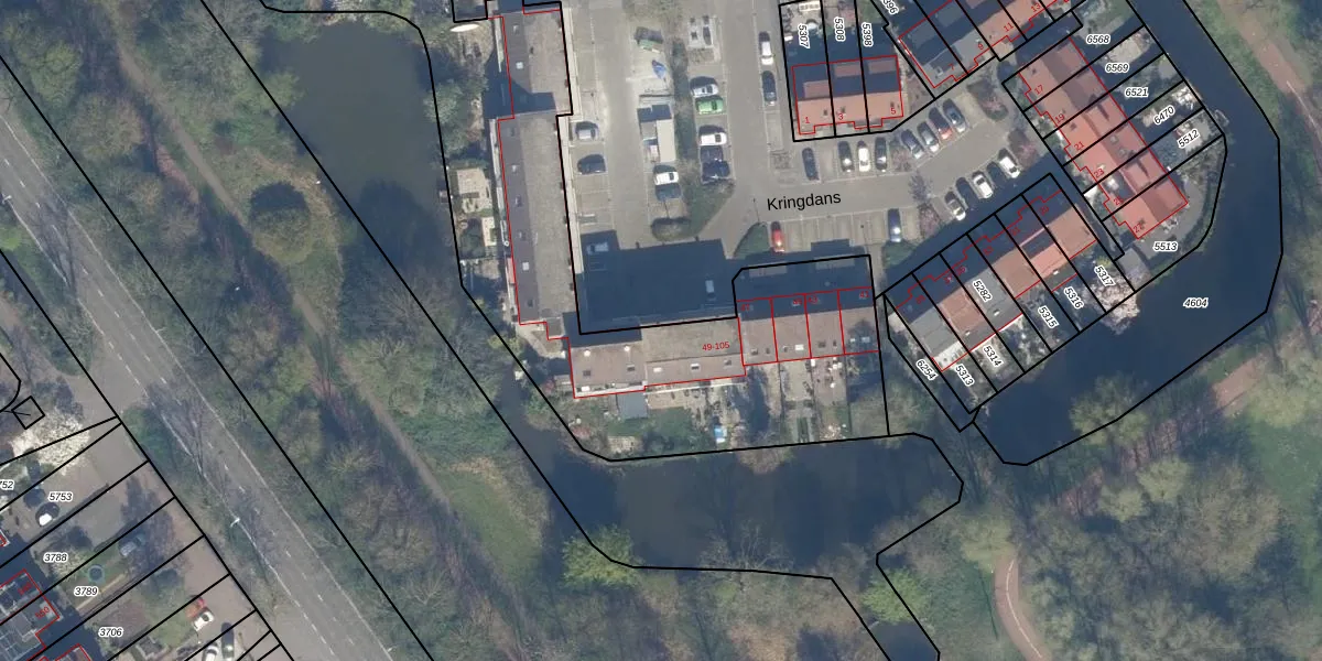 Het perceel waarop Kringdans 85 staat heeft een oppervlakte van 3763 m². Dit is een zeer groot perceel. De perceeloppervlakte wordt geregistreerd door het Kadaster. Gedetailleerde informatie over de maten van dit perceel kunt u vinden in het rapport Kadastrale kaart met maatvoering van Kringdans 85.