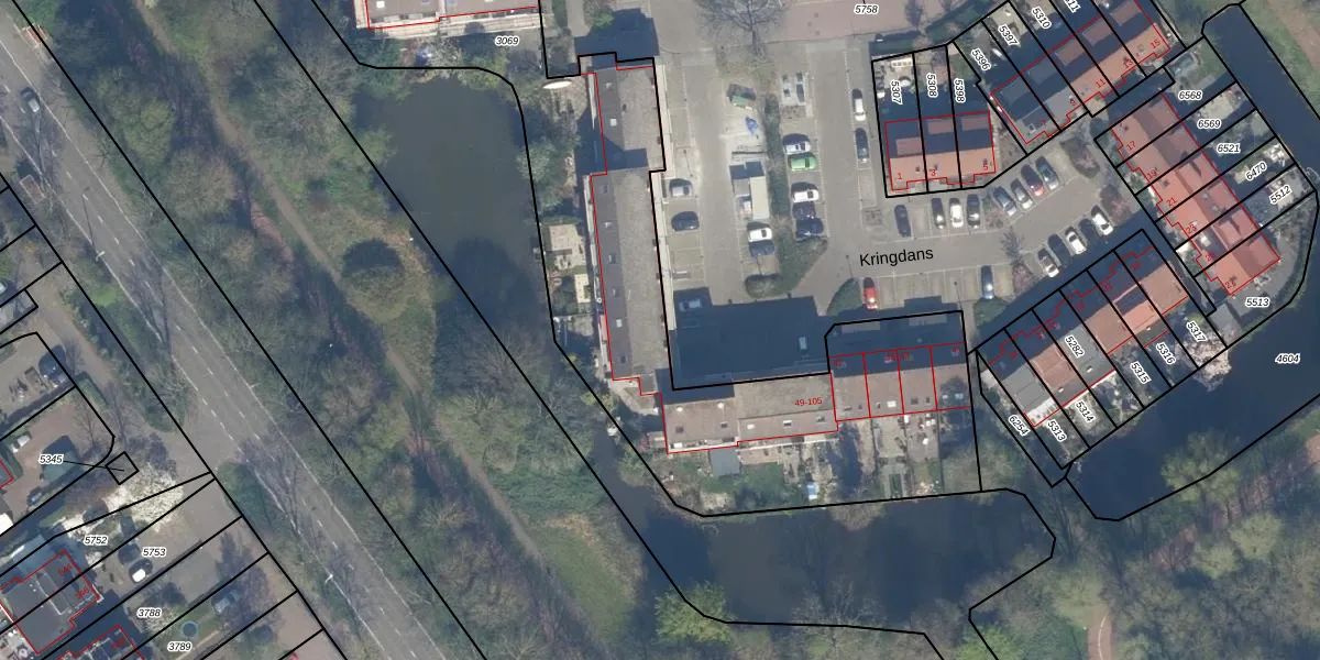 Het perceel waarop Kringdans 93 staat heeft een oppervlakte van 3763 m². Dit is een zeer groot perceel. De perceeloppervlakte wordt geregistreerd door het Kadaster. Gedetailleerde informatie over de maten van dit perceel kunt u vinden in het rapport Kadastrale kaart met maatvoering van Kringdans 93.