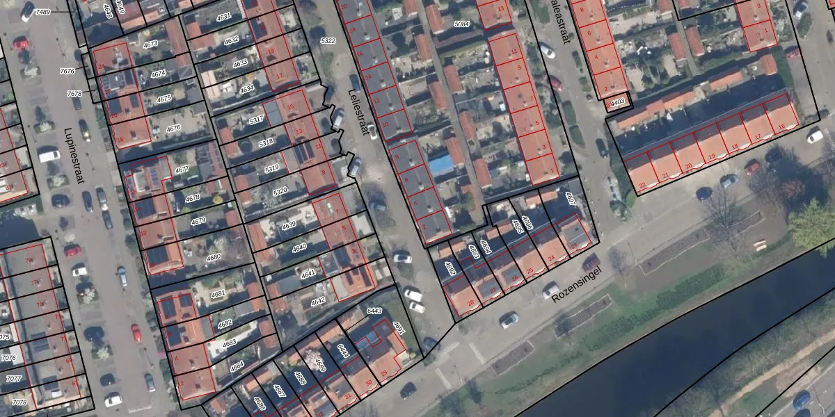 Het perceel waarop Leliestraat 4 staat heeft een oppervlakte van 2837 m². Dit is een zeer groot perceel. De perceeloppervlakte wordt geregistreerd door het Kadaster. Gedetailleerde informatie over de maten van dit perceel kunt u vinden in het rapport Kadastrale kaart met maatvoering van Leliestraat 4.
