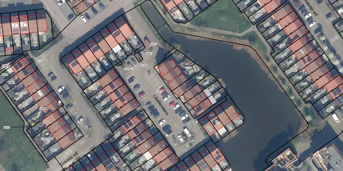 Het perceel waarop Libellendans 3 staat heeft een oppervlakte van 351 m². Dit is een groot perceel. De perceeloppervlakte wordt geregistreerd door het Kadaster. Gedetailleerde informatie over de maten van dit perceel kunt u vinden in het rapport Kadastrale kaart met maatvoering van Libellendans 3.