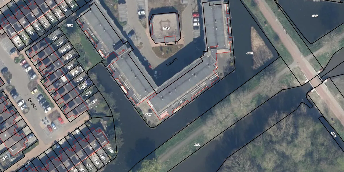 Het perceel waarop Louvre 152 staat heeft een oppervlakte van 2337 m². Dit is een zeer groot perceel. De perceeloppervlakte wordt geregistreerd door het Kadaster. Gedetailleerde informatie over de maten van dit perceel kunt u vinden in het rapport Kadastrale kaart met maatvoering van Louvre 152.